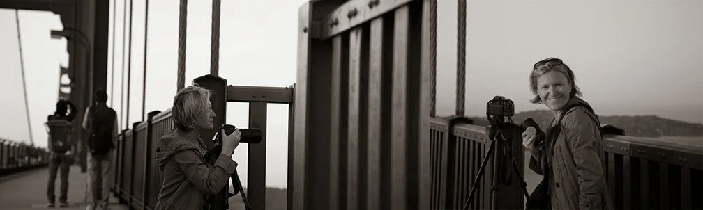 For six weeks I chose the Golden Gate Bridge as a site for my exploratory investigation of time and space for it represents to me a symbolic connection to time. The bridge, traditionally a passage of movement from point A to B, is also a great study case for investigating the notion of rhythm and repetition, elements characteristic for the concept of time. During this period I also observed the play of light, sound, vibrations, rhythms and patterns and the impact all of the above have on my own perception of time and my physical environment. My intent was to continue my exploratory investigation in that domain by collecting the visual materials from the site at different times of the day.